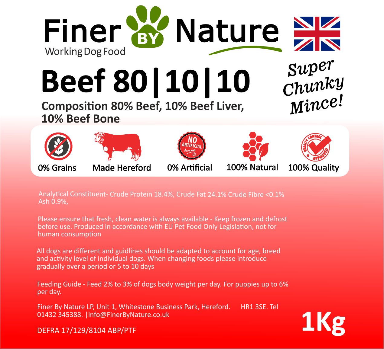 Working Dog – Beef 80/10/10 Raw 1kg Bag.