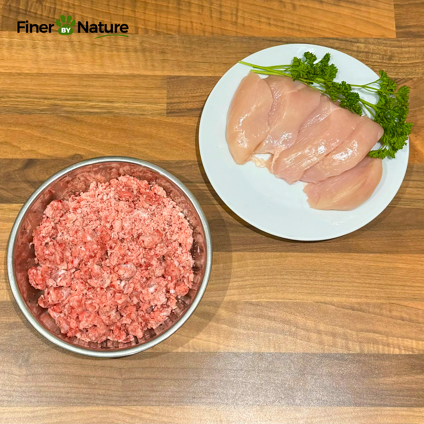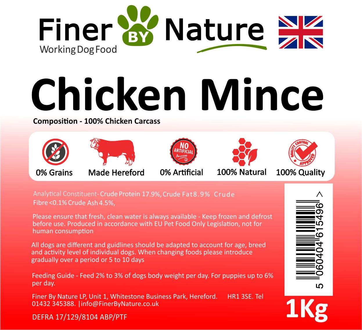 Made with 100% meaty Chicken carcass and nothing else, our mince has a great texture that dogs love, super fresh made from frozen material not defrosted ensures our chicken smells great, tastes great, looks great