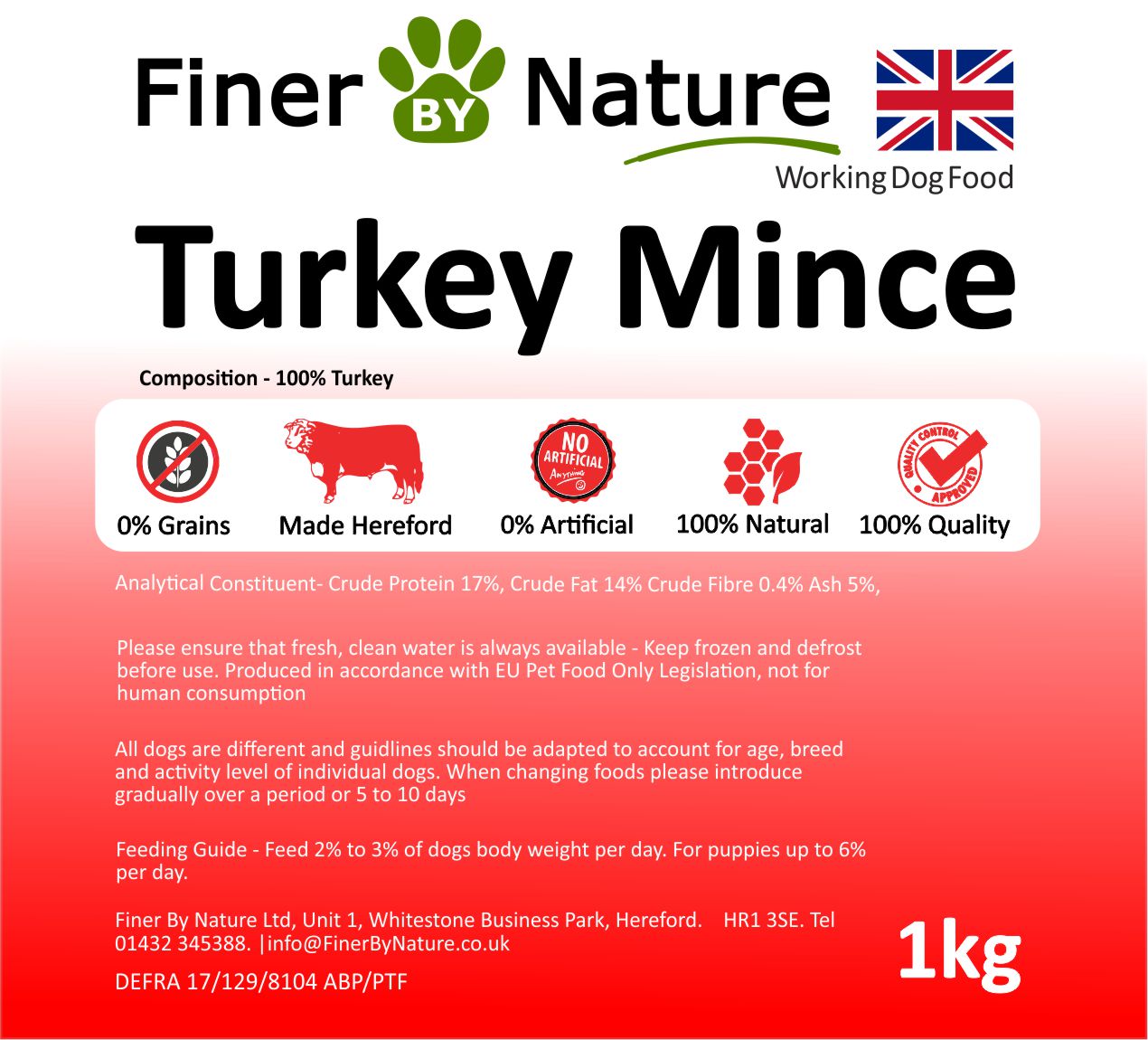 Made with 100% Turkey Legs and nothing else, our mince has a great texture that dogs love, super fresh made from frozen material not defrosted ensures our Turkey smells great, tastes great, looks great