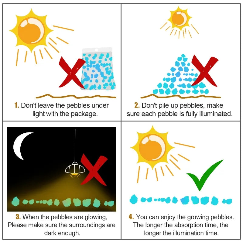 50 Glow in The Dark Pebbles Size 13-17 mm